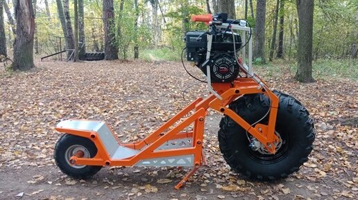 Мир внедорожной мототехники разнообразен и удивителен, доказательство этому сегодняшний экспонат: складной, компактный, мощный, моторизированный самокат для самого лютого бездорожья и преодоления бродов...