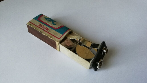 Батарейка типа "Крона" для мультиметра перестала меня устраивать. Пришла "умная мысля" использовать Li-Ion батарейки размера "2032". Собрал пробный вариант на основе коробка от спичек. Мультиметр проработал около шести месяцев. Было много прозвонки и загорелось "Bat". Решил создать более капитальную версию из пластикового квадрата 20х20. Клеил цианакрилатом. Батарейки входят хорошо, а выходят не очень...