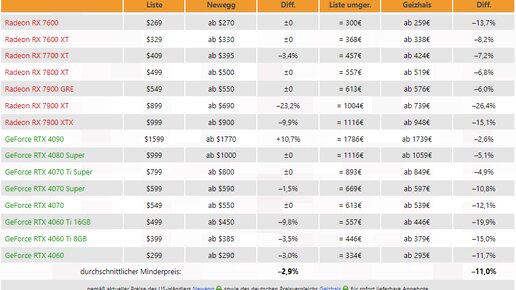 Несколько дней назад на сайте 3DCenter появилась любопытная аналитика, свидетельствующая о крайне интересных изменениях на рынке настольной графики в Европе. Речь о сформированной тенденции, в рамках которой видеокарты NVIDIA продаются на 10% дешевле рекомендованной стоимости, тогда как продукция AMD ниже MSRP на целых 12%. Выводы подкрепляются графиками, которые позволяют убедиться в точности представленных данных. Первым делом автор данного материала решил проверить, не лукавят ли парни из 3DCenter, выдавая желаемое за действительное...
