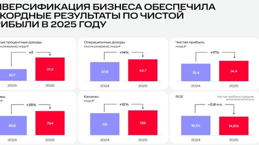 🧮 МТС Банк опубликовал накануне свою финансовую отчётность по МСФО за 2025 год, а также провёл конференц-звонок. Давайте разберём вместе с вами ключевые моменты этой отчётности, а также подумаем, какие возможности они открывают для инвестиций в акции этого банка. 📈 Итак, чистые процентные доходы (ЧПД) после вычета резервов показали двукратный рост, составив внушительные 21,2 млрд руб. Причины такой позитивной динамики — диверсификация активов и увеличение клиентских остатков в пассивах, что позволило снизить стоимость привлечения средств, на фоне всё ещё высоких ставок в российской экономике...