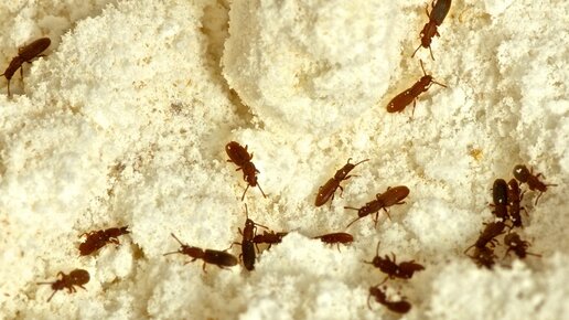 Мука при хранении дома может подвергнуться заражению жучками. Чтобы не допустить этого, во-первых, надо знать врага в лицо. Во-вторых, соблюдать условия хранения. Напасть на муку и другие сыпучие продукты могут: Хлебный точильщики, как правило, заводятся при неправильном хранении муки на мукомольных фабриках и хлебозаводах. Поэтому надо внимательно просмотреть только что принесённую из магазина муку. Не оставлять её в бумажном пакете, а сразу пересыпать её в контейнер. Долгоносик предпочитает рис и тоже может занестись из магазина...