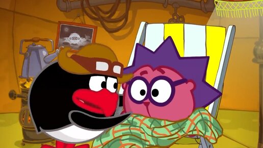 Творческий кризис Пин в печали. Собственные изобретения кажутся бесполезным ни на что не пригодным хламом. Он освобождает гараж и увозит всё в утиль. К нему прибегают Крош с Ёжиком и пытаются поднять настроение, вытаскивая по одному предметы механического искусства и сообщая, что это непременно полезные штуки. Волшебная пушка Пину ничего не нравится, и он сваливает всё на огромный склад ненужных вещей. Среди этого хлама Крош вдруг находит пушку, которую Пин называет коротко и ясно - "счастьемёт"...