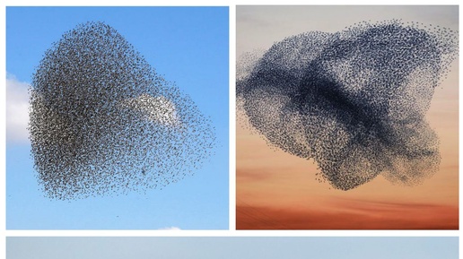 Мурмурация Это явление многие видели. Оно возникает осенью, зимой и весной примерно за час до захода солнца. Произошло от латинского слова murmuratio, что в переводе означает жужжание, бормотание. Именно на это похож звук, который производится движениями крыльев птиц. Мурмурация – скоординированный полёт большой стаи птиц, когда внешне это выглядит как меняющаяся динамическая объёмная фигура с изменчивой плотностью. Чаще всего её исполняют скворцы, но грачи и вороны тоже не отстают и пробуют себя в этом деле...