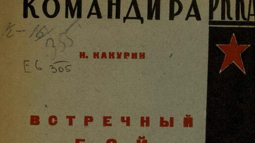 Какурин Н. Е. Встречный бой / Н. Какурин. — Москва : Военный вестник, 1927. — 136 с., [1] вклад. л. схем. : схем. ; 15х14 см.. — (Библиотека командира РККА). — 10 000 экз. Об издании Предпринимая наш труд, мы задались целью: на исторической базе нескольких типичных частных случаев проследить применение на практике германского учения о встречном бое так, как оно сложилось теоретически до мировой войны; постараться установить те принципиальные изменения, если они были, которые мировая война внесла...