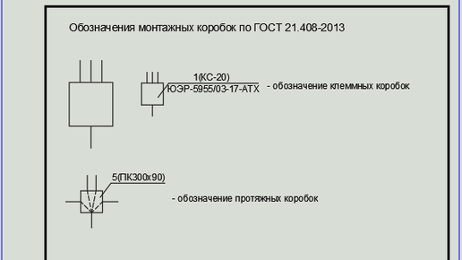Монтажные коробки на схемах изображаются в виде прямоугольников с указанием их типа и порядкового номера. · Порядковая нумерация коробок осуществляется с добавлением буквы «К» · Примеры обозначения: 1К, 2К, 3К и т.д. Над полкой линии-выноски указывают: · Обозначение коробки · Порядковый номер · Тип коробки Под полкой линии-выноски указывают: · Обозначение установки · Номер листа установки Соединительные коробки изображаются: · В виде прямоугольников · С условными обозначениями входных и выходных...