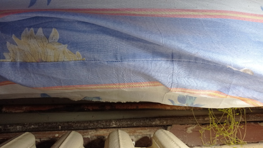 ГДЕ ЛЮДИ ХОДЯТ, ТАМ ТРАВА НЕ РАСТЕТ. Вот, вот, тут я не ходила и даже почти не заглядывала, поэтому трава решила вылезти и обратить на себя внимания. Какое ужасное удивление, трава в доме! "ПО ЗАГЛУШИНАМ, В ЗАСТЕНЬЕ - ТРАВА ПРИВОЛЬЕ!" А мне не до приволья. Нашла место! Моя кровать вплотную с батареей. Под батареей трубы, по которым идет горячая вода. Здесь я редко протираю пыль, неудобно туда пробраться. Вот и не доглядела. Травка и рада, что никто на нее не обращает внимание, с удовольствием растет и прорастает...