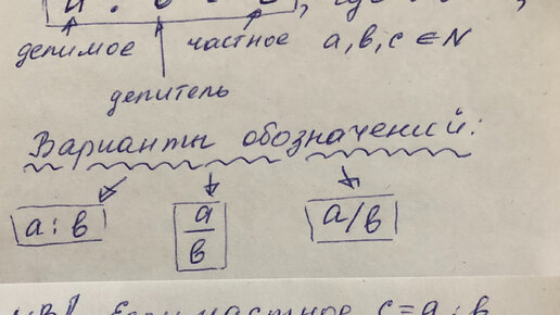 Деление - действие, обратное умножению. А : В = С, при С * В = А (А, В, С - натуральные числа) А - делимое; В - делитель; С - частное. Варианты обозначение деления: Свойства деления: 1ое Свойство. Посмотрим на ситуацию, когда нам нужно одно число поделить само на себя, что мы получим? Мы получим 1 - в этом и заключается 1ое свойство деления. А : А = 1 Например: 5 : 5 = 1; 129 : 129 = 1 2ое Свойство. Теперь попробуем поделить число на 1 - получим то же самое число: А : 1 = А Например: 23 : 1 = 1; 3 : 1 = 3 3е свойство...
