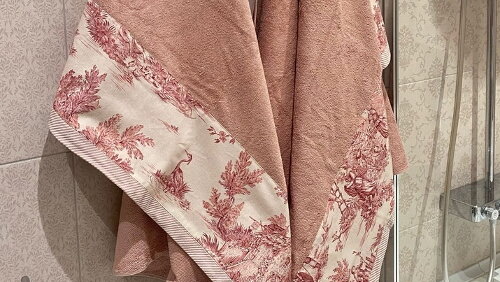 На одном сайте, продающем текстиль итальянского производства увидела набор за 18 тысяч рублей. В нем всего два небольших по размеру полотенца — одно для рук, второе для тела. Получается, что одна штука стоит 9 тысяч рублей. Выглядит итальянский текстиль достаточно привлекательно. Особенно мне понравилась окантовка каймой с цветочным рисунком. Если не готовы платить много... Но тратить огромные деньги за тряпочку я не готова. Можно сделать не хуже. Вдохновилась идеей Олеси Дмитриченко из Санкт-Петербурга...