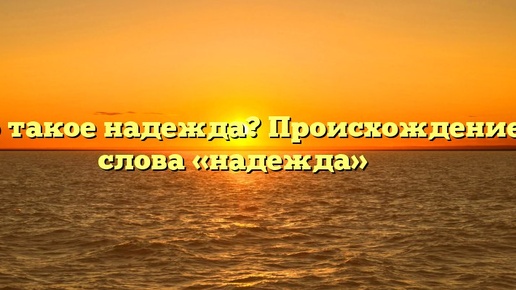 Что такое надежда? Происхождение слова «надежда» Слово «надежда» распространенное слово в русском языке. Нет такого человека, который не знал бы, не использовал это слово в разговорной речи. Толковые словари русского языка, толкуют этот термин в нескольких контекстах. Рассмотрим моменты, которые раскрывают происхождение слова «надежда». Этимология слова В старославянском языке существовало слово «надежда» — nadědja, dj — жд, ср. старинное надежный — надежда, суф. производного — суф. -j— от naděti «поставить», ср...