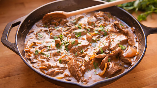 Отличительной чертой этого русского блюда является нежнейшее вкусное мясо, которое буквально тает во рту. Чтобы добиться такого результата, готовить блюдо нужно, соблюдая все тонкости и следовать некоторым советам. Это угощение универсально, оно подходит и для праздничного стола, и для будничного обеда; не занимает много времени и не требует никаких особых кулинарных навыков. Блюдо названо в честь последнего представителя рода Строгановых, который жил в 19 веке. Он был богат, не имел детей, любил вкусно поесть и даже кормил нуждающихся...