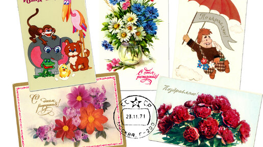 Советские открытки, найденные в старом сундучке. Ч. 14. Открытки "С днём рождения!" и "Поздравляю!" 70-90-х гг.