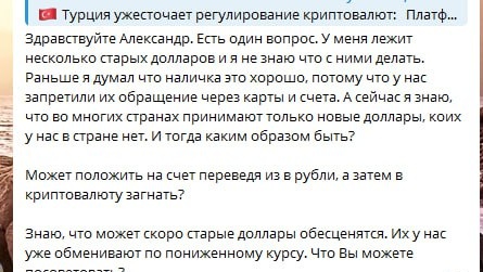 Наличка - это очень хорошо! Наличка правит миром. Китай избавился от налички, и мне это не нравится. Наличкой можно расплатиться где угодно. Наличку не возможно заблокировать. но её возможно перевыпустить в новом дизайне, а от старой отказаться. Когда речь заходит о долларах, то доллары в наличке - это хорошо. Всем клиентам я стараюсь сформировать такой резерв. Но есть нюансик - старые доллары скоро будут не в ходу. Как быть? Тут несколько вариантов и все с заковыристые: 1️⃣ Отдать старые в банк и взять новые с комиссией...
