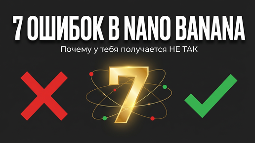 Три месяца назад я начал работать с Nano Banana и за первую неделю слил 200 генераций на мусорные результаты. Промты казались логичными, но нейросеть выдавала не то. Персонажи менялись от кадра к кадру. Текст выходил с ошибками. Редактирование портило исходники вместо улучшения. Проблема была не в нейросети. Проблема была в семи критических ошибках, которые делают 90% новичков. Как только я их устранил, качество генераций выросло в разы, а количество неудачных попыток упало до 5-10%. Эти ошибки повторяются у всех...