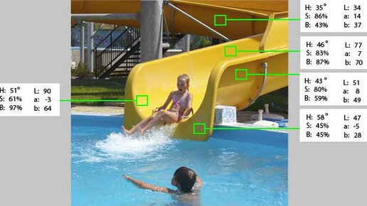 Мы говорим:-"этот предмет имеет цвет", в реальном, объемном мире мы имеем возможность рассмотреть предмет со всех сторон, под разными углами и разным освещением, цвет предмета будет нами идентифицирован однозначно - "помидор - красный, трава - зеленая, лимон - желтый". С физической точки зрения, цвет предмета – это отношение между освещением, полученным предметом, и отраженным от предмета светом. Таким образом, отражая свет при общем освещении, предметы обнаруживают свой цвет по отношению друг к другу (окружению)...