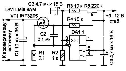 Тема электронных нагрузок довольно популярна в настоящее время. Однако, не смотря на разнообразие схем и вариантов, большинство из них реализуют один и тот же принцип управления током. Я говорю о линейных нагрузках, а не импульсных. Причем это касается и выпускаемых промышленностью нагрузок. В основе очень многих электронных нагрузок лежит схема, подобная такой Схема известна очень давно и многократно публиковалась. Различные модификации, например, замена полевого транзистора на биполярный, не влияют радикально на работу схемы...