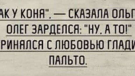С утра на небе ни облачка и даже, можно сказать, тепло на фоне недавних заморозков — аж +12. То-то в доме оказалось натоплено почти до духоты: перестарался, когда ночью подкладывал дрова. Надо проветрить, заварить себе чашку кофе, а там и до находок этой недели дело дойдёт. *** начальник цеха умоляла не собираться больше трёх но это словно не касалось матрёх © НиРо *** олег петров предпочитает брюнеток пишут в новостях и все брюнетки лезут в гугол смотреть а кто такой олег © special_k *** он на...