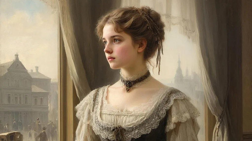 Анна стояла у окна и смотрела вдаль. Её глаза смотрели в пространство, не видя ни спешащего разносчика с корзиной, ни элегантной дамы в экипаже, ни мальчишек, играющих на мостовой. Она крутила на своем изящном пальце кольцо, что было ей немного великовато, будто бы ища поддержки у своей бабушки. Это кольцо было семейной реликвией - оно было с изумрудом в старой, массивной оправе из золота и тяжелым, непривычно грубым на тонкой руке Анны.