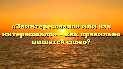 ? Орфография выражения «заинтересовало» или «за интересовало» определена его морфемным составом и принадлежностью к одной из самостоятельных частей речи. Как пишется правильно: «заинтересовало» или «за интересовало»? Безошибочно написано первое слово – «заинтересовало». Какое правило применяется? «Заинтересовало» – глагол сов. вида «заинтересовать» в форме 3 л. ср. р. прош. времени. Употребляется в речевом процессе в значении – «возбудить в ком-либо любопытство, привлечь чьё-либо внимание»...