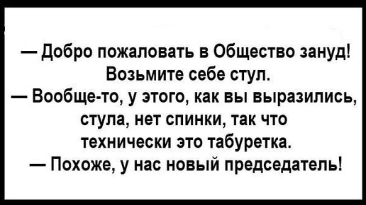 Зануд не любят. Спросите зануду, как дела, и он начнет вам рассказывать, как у него дела. Как будто это кого-то интересует! Ну ответь ты, как все:"Отлично! А как у тебя?"- и разойдемся, как в море корабли, довольные друг другом. Но иногда общения с занудами не избежать. Ира шла на день рождения к подруге, а её муж был типичным занудой. Как-то Ирина спросила подругу: -Света, а почему ты вышла замуж именно за Сашу? -Он очень "правильный". Не пьёт, не курит, занимается спортом, ведет здоровый образ жизни, отдает мне всю зарплату, заботится о семье, потому что так правильно...