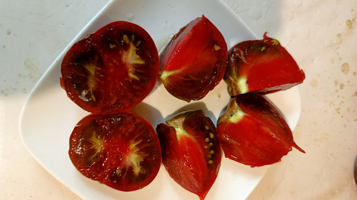 Приглашаю поделиться вашими выращенными сортами томатов. У помидоров которых мякоть очень нежная, мягкая и гладкая. Никаких крупинок и плотной текстуры. В свою очередь, расскажу о своих двух таких сортах. В 2025 году таким оказался Томатный Гном Чёрный Ангус (Dwarf Black Angus) среднеспелый индетерминантный сорт томатов, созданный в рамках Dwarf Tomato Project («проект Гном Томатный»). Представлен в 2018 году. Его происхождение связано с гибридом линии «Cheerful», которая, в свою очередь, была получена путём скрещивания «Summertime Green» и «Sweet Adelaide»...