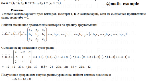 Высшая математика в примерах5 лет назадПодписатьсяПри каком значении α векторы a, b и c будут компланарны КР "Векторная алгебра" Задание 5.2 Рябушко А.П.