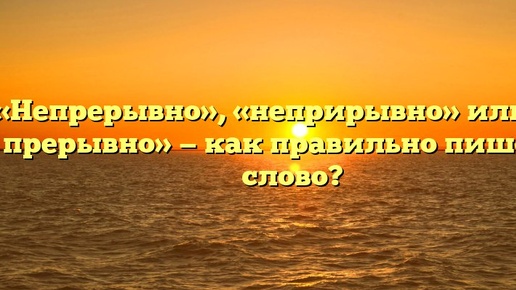 «Непрерывно», «неприрывно» или «не прерывно» — как правильно пишется слово? Не можете решить, какой из вариантов будет правильным — «непрерывно», «неприрывно» или «не прерывно»? Предлагаем вспомнить школьную программу, и выяснить, как правильно пишется это слово. Как пишется правильно: «непрерывно», «неприрывно» или «не прерывно»? Единственно верный вариант написания данного слова – непрерывно. Какое правило применяется? Для начала определимся, следует ли писать рассматриваемое слово слитно или же раздельно...