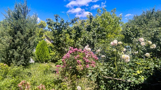Вечером, когда спать ложились, началось - ветер посвежел, зашевелил верхушки деревьев, а затем тяжёлые шары зеленый грецких орехов начали стучать по забору. Мы весной, когда укорачивали орех, то оставили одну ветку над забором. Она высоко тогда была, но орехов много, тяжелые, ветка чуть не падает, я под неё поставил подпорку, но всё равно на забор ложится. А обрезать жалко - на ней много орехов, и все крупные, чистые, в отличие от прошлого лета. Мы тогда вообще ни одного ореха со своего дерева не сняли - всё черные были и червивые...