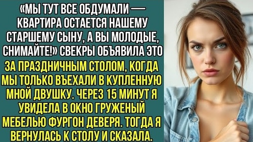 Я вернулась домой поздно вечером после тяжелого рабочего дня. Город за окнами гудел, на улице уже темнело, а я мечтала только о чашке чая и тишине. Но едва я открыла дверь своей квартиры, сразу почувствовала напряжение. В гостиной сидели мои свёкры на диване с важным видом, будто они пришли решать судьбу государства. Рядом стоял мой муж, опустив глаза, словно школьник, которого застали за чем-то постыдным. Я сбросила с плеч пальто и устало спросила, что случилось. И тут свекровь, держа руки на коленях, гордо произнесла: «Мы тут всё обдумали...