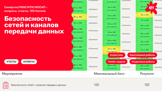Безопасность сетей и каналов передачи данных (Синергия/МОИ/МТИ/МОСАП – вопросы, ответы, 100 баллов)