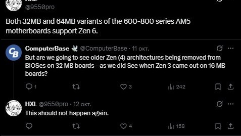 Инсайдер HXL утверждает, что все материнские платы AM5 серий 600 и 800 смогут работать с процессорами AMD Zen 6 — независимо от того, какой объём BIOS установлен — 32 или 64 МБ. Однако специалисты предполагают, что при выпуске новых прошивок производителям, возможно, придётся снять поддержку некоторых старых чипов Zen 4, чтобы освободить место под микрокод свежих моделей...