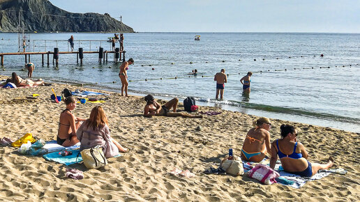Ну и дела! Поехали к морю, думали пляж будет совсем пустой. Ведь сентябрь уже закончился, обычно к началу октября все курортники разъезжаются по домам. Остаются только самые-самые фанаты Крыма, которые и зимой себя неплохо чувствуют на берегу моря. А тут пляж забит народом, все загорают и купаются, как будто сейчас разгар сезона. Но по порядку. Планировали поехать к мысу Меганом, но долго собирались. Время уже почти половина третьего, а ехать к Меганому не меньше часа. На ходу перестроились и отправились в поселок Орджоникидзе, туда мы добираемся всего за полчаса...