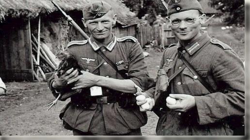 Наши бойцы долго не могли понять, для чего немцы вешали ощипанных куриц на ремни, но как оказалось, они использовались по прямому назначению