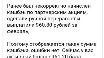 Здравствуйте Пикабушники, хотел сегодня рассказать небольшую историю, про то, какая "хорошая" поддержка у альфа банка, да и просто узнать может у кого еще были подобные случаи как у меня, т.к. вопрос в чате так и не решен. Суть в следующем: 10 марта мне был начислен кешбэк за февраль в размере 413р. Я ее вывел и потратил и вот сегодня захожу в приложение и вижу что за февраль начислено уже 1284руб с возможностью вывести 961р (при тратах за февраль всего 9227, 49р). Меня немного смутили эти "лишние"...