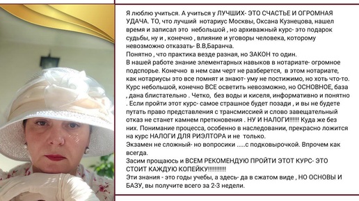 Нотариат это нужно?🤔 Отзывы учеников, которые уже прошли обучение - гласят однозначно «НУЖНО»🔥 Например, Виктория выделила для себя следующие преимущества обучения ⤵️ ✅ считает, что тема нотариата является важной в работе риэлтора; ✅ все уроки оказались очень информативными и понятными; ✅ информация изложена четко и без воды; ✅ интересные вопросы на экзамене с подковыркой. Виктория рекомендует пройти данное обучение каждому, т.к. в курсе дана вся важная информация,...