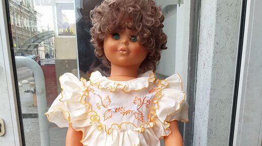 Однажды просматривала объявления в Мешке, выбор кукол, которые мне нравятся, там очень небольшой. И вдруг я наткнулась на нее: Все как мне нравится: огромная, 86 см. ростом (у меня гигантомания), не блондинка (уж очень у меня их много), интересное личико (губки какие сладкие). А то, что вид у нее почти бомжевский, так это не страшно, помоемся, причешемся и станет красоткой. Но у нее было одно "но", т.е. один серьезный дефект, который меня отпугнул. У бедняжки нет диска ((( Ладно бы он был оторванный, я бы припаяла, укрепила железной арматурой (есть уже такой опыт, как-нибудь расскажу)...