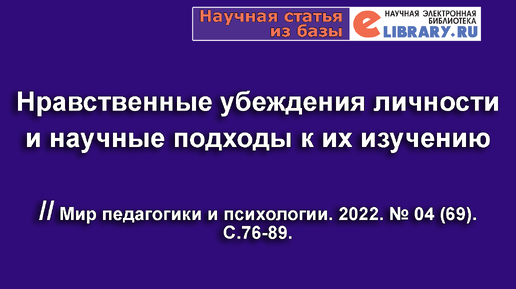 Аннотация. Показаны причины, по которым в отечественной науке уделялось много внимания изучению и формированию нравственных убеждений личности: среди других компонентов нравственной сферы личности убеждения являются одними из наиболее устойчивых, обладают большой побудительной силой и тесно связаны с поведением. Приведены мнения отечественных ученых, согласно которым нравственные убеждения являются основой устойчивой личностной позиции, одной из высших форм выражения направленности личности, входят в состав нравственного сознания личности и могут быть показателями уровня нравственного развития...