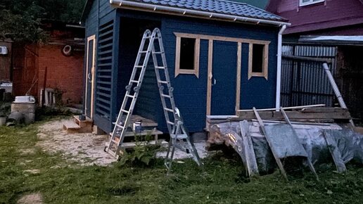 Ну что ж, поработала в командировке, пора и руками поработать! Дача после дождей и временного отсутствия встретила нас травой выше колена, так что пришлось нанять местного дяденьку, чтобы все выкосить, мои косилки с этими зарослями бы не справились, и я бы потеряла целый день. А он с бензокосой управился меньше чем за 1,5 часа! Вчера мы до 10 вечера красили домик в синий в первый слой и одну стенку даже вторым успели. После ужина у меня включился режим ремонтного маньяка и я пошла покрывать еще и маслом, очень хотелось утром уже увидеть какой-то результат...