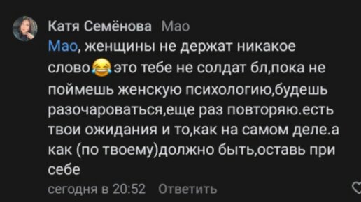 Ещё одно признание женской лжи в комментариях. Оригинал по ссылке: https://vk.com/wall-172047394_180772?thr…