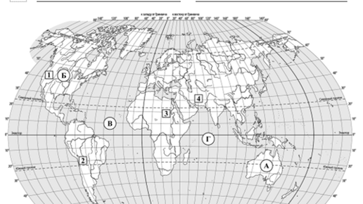 Задание №1 1. Внимательно прочитать текст задания. Открыть в атласе физическую карту полушарий. 2. Сравнить карту мира в задании с картой полушарий. 3. Определить названия материков или океанов, обозначенных буквами на карте. 4. Записать названия материков или океанов. Задание №2 1. Внимательно прочитать текст задания. Открыть в атласе физическую карту полушарий. 2. Сравнить карту мира в задании с картой полушарий. 3. Определить название горной системы, обозначенной цифрой на карте. 4. Записать название горной системы...