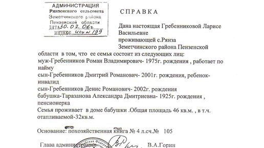 Справка о составе семьи