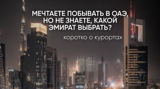 Объединённые Арабские Эмираты идеально подойдут всем: любителям активного отдыха, семейным туристам с детьми, молодожёнам и весёлым компаниям. В этой статье расскажем о главных курортах страны — сохраняйте и делитесь полезной информацией! Главный туристический эмират и символ современного технологического прогресса: здесь Бурдж-Халифа — самое высокое здание мира, искусственные острова, огромные торговые центры и разнообразные развлечения. Дубай стремится быть самым-самым, где возможное становится реальностью...