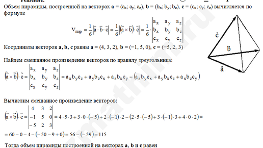 Высшая математика в примерах1250 читали · 4 года назадПодписатьсяВычисление объема пирамиды, построенной на векторах a, b, c пример 3.#образование #учеба #векторнаяалгебра #обучение #математика