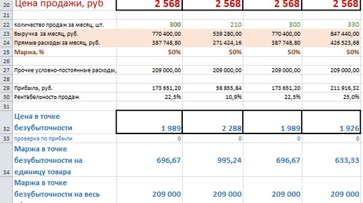 Планировать количество проданного товара (услуг) всегда сложно. Даже при наличии статистики за прошлые годы, спрос покупателей зависит от очень большого количества факторов. При этом большая часть предприятия не имеет возможности гарантировать свои объемы продаж, основываясь на заключенных годовых договорах с жестко прописанными объемами. Если нужно оценить как изменятся показатели деятельности предприятия при снижении или росте продаж можно использовать такую модель В данной модели предприятие продает (или планирует продавать) в среднем 300 единиц товара...