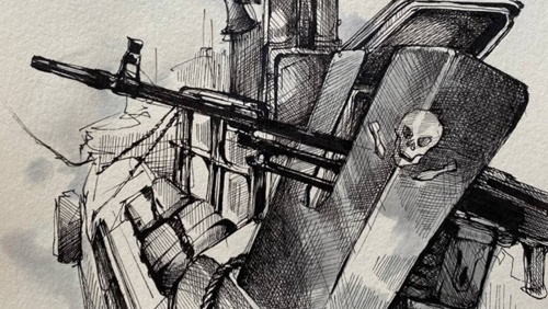 Я знаю, что я ультранепопулярен. Привык. Но, вот, как-то обидно стало… За какую-то расхябанность, что ли, России. Хотя, с другой стороны, это обеспечивает огромную свободу слова. Я б взвыл от возмущения, если б мои вещи воспринимались, как политический донос власти и повод для репрессий. Но всё-таки… Я б хотел, чтоб вещи Валерия Букши (Я вижу) сопровождались записью, что он рисует антироссийские картинки, раз я многократно доказал такую его направленность. Вот, думаю, очередная из них. Я спросил интернет: «мыслимо ль чтоб в ВС РФ изображали на своей технике изображали череп и кости»...