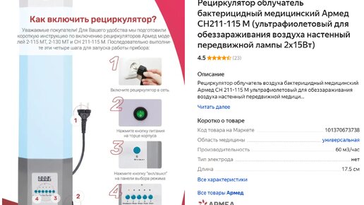 О товаре Рециркулятор бактерицидный облучатель воздуха Армед СН-211-115М - это мощный и надежный прибор, который быстро и эффективно очищает воздух от патогенных микробов. Он работает на основе двух бактерицидных УФ-ламп, которые обеспечивают максимальную эффективность. Таймер позволяет настроить работу облучателя на нужный интервал времени, что делает его еще более удобным в использовании. Армед СН-211-115М идеально подходит для применения в общественных местах, медицинских учреждениях и дома. Благодаря...