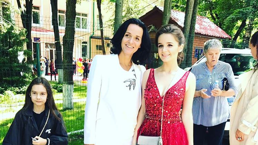 Выпускнику 11 класса не так чтобы важно, в каком виде его мама придет на торжественное вручение аттестатов. Лишь бы в приличном. То для выпускника детского сада, где образ красавицы-мамы еще как актуален, придется постараться. Для вдохновения обратимся к фотогалереям отечественных звезд. Довольно удачный выбор. Дочь в ярком платье принцессы. Мама в белом костюме. Виновница торжества очевидна. Звездная мама ее не затмевает, а как бы становится фоном. Но вот стоило ли звезде выбирать именно такой цвет? На фото заметно, что total white сделал зубы звезды желтыми...