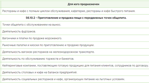 ОКВЭД для общественного питания