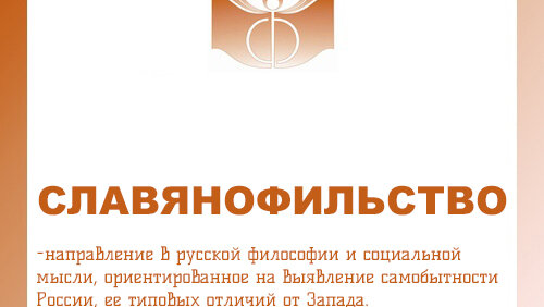СЛАВЯНОФИЛЬСТВО – направление в русской философии и социальной мысли, ориентированное на выявление самобытности России, ее типовых отличий от Запада. Преимущественное внимание в славянофильстве уделялось философии истории. Возникло в конце 30-х гг. 19 в. как оппонент и идейный антипод западничества. Манифестом, возвестившим о его становлении, явилась рукописная работа А.С.Хомякова «О старом и новом», вскоре дополненная сочинением И.В.Киреевского, также рукописным – «В ответ А.С.Хомякову». Оба выступления датируются 1839...