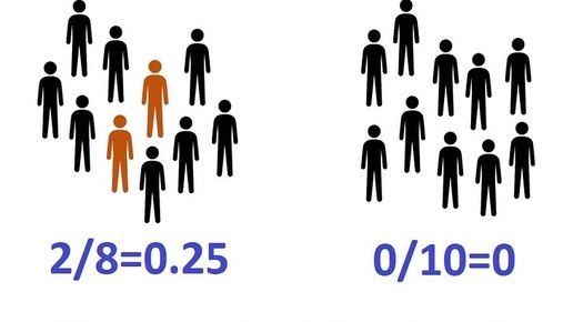 Всем хорош показатель - отношение шансов (ОШ или OR, odds ratio): Но у такого замечательного критерия есть один большой минус. ОШ нельзя рассчитать, если в одной из групп частота события равна 0% или 100%. Причиной является методика расчёта ОШ и границ 95% ДИ. При нулевой или 100% частоте события в одной из групп - в формуле получается деление на 0. ⠀ Когда-то, сталкиваясь с ситуацией сравнения двух процентных долей, одна из которых была равна 0%, в графе ОШ я ставил прочерк и писал, что рассчитать ОШ невозможно в связи с делением на 0...