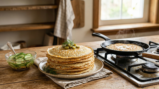Сравнила постные блины на минеральной воде и на рассоле от огурцов — на рассоле пышнее и ароматнее